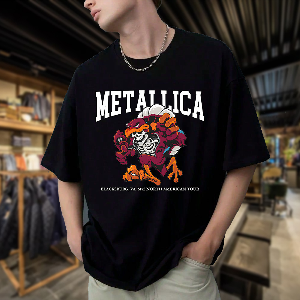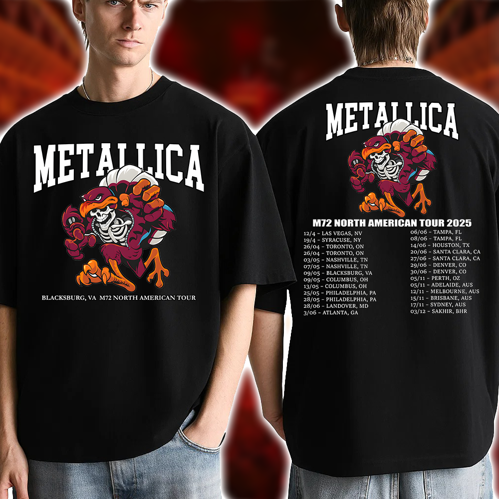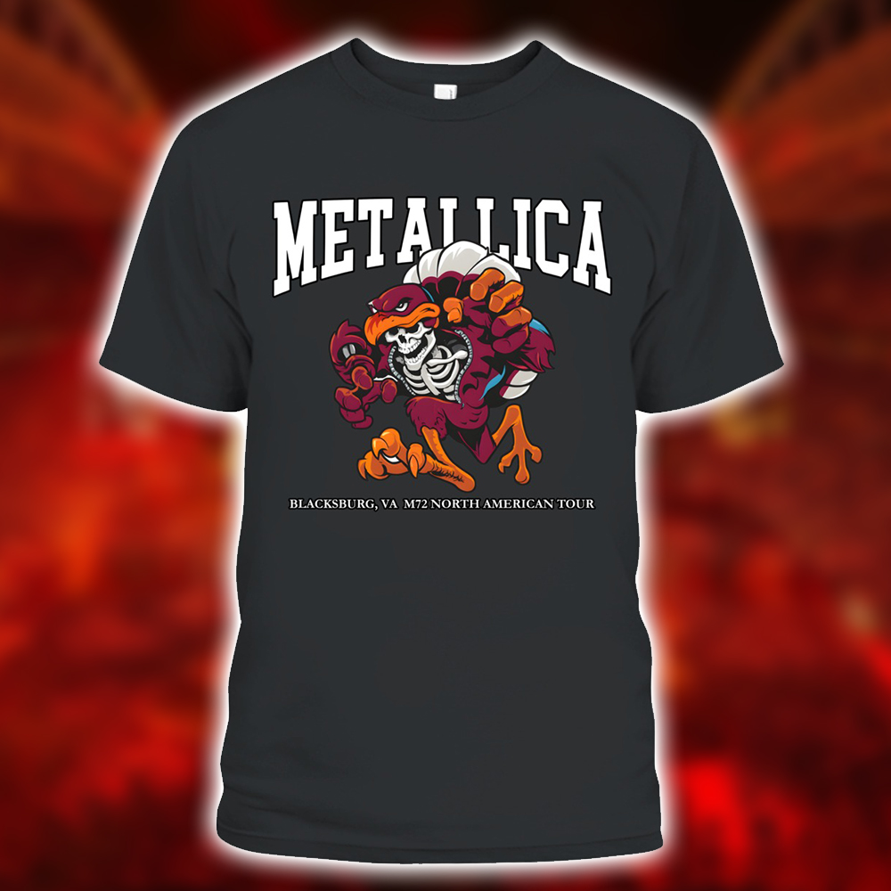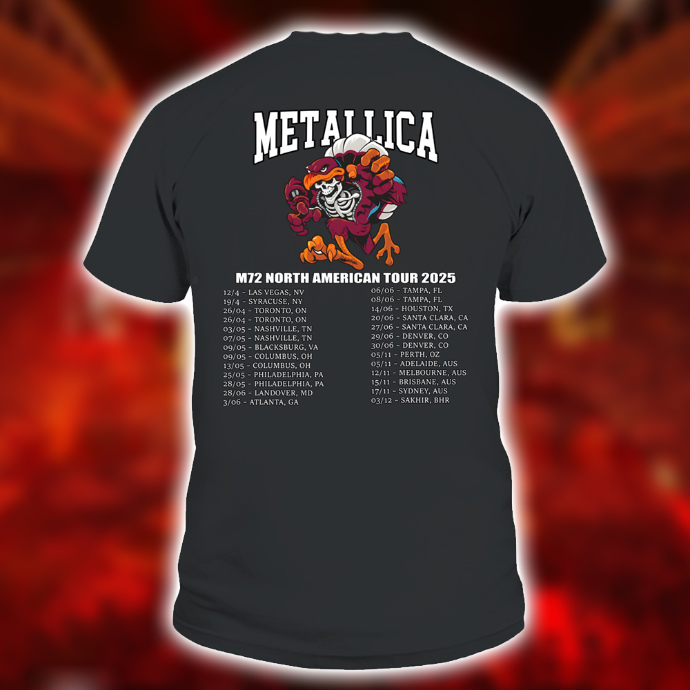Metallica M72 2025 Skeleton Mascot HokieBird Two-Sided T-Shirt – Blacksburg May 7 at Lane Stadium