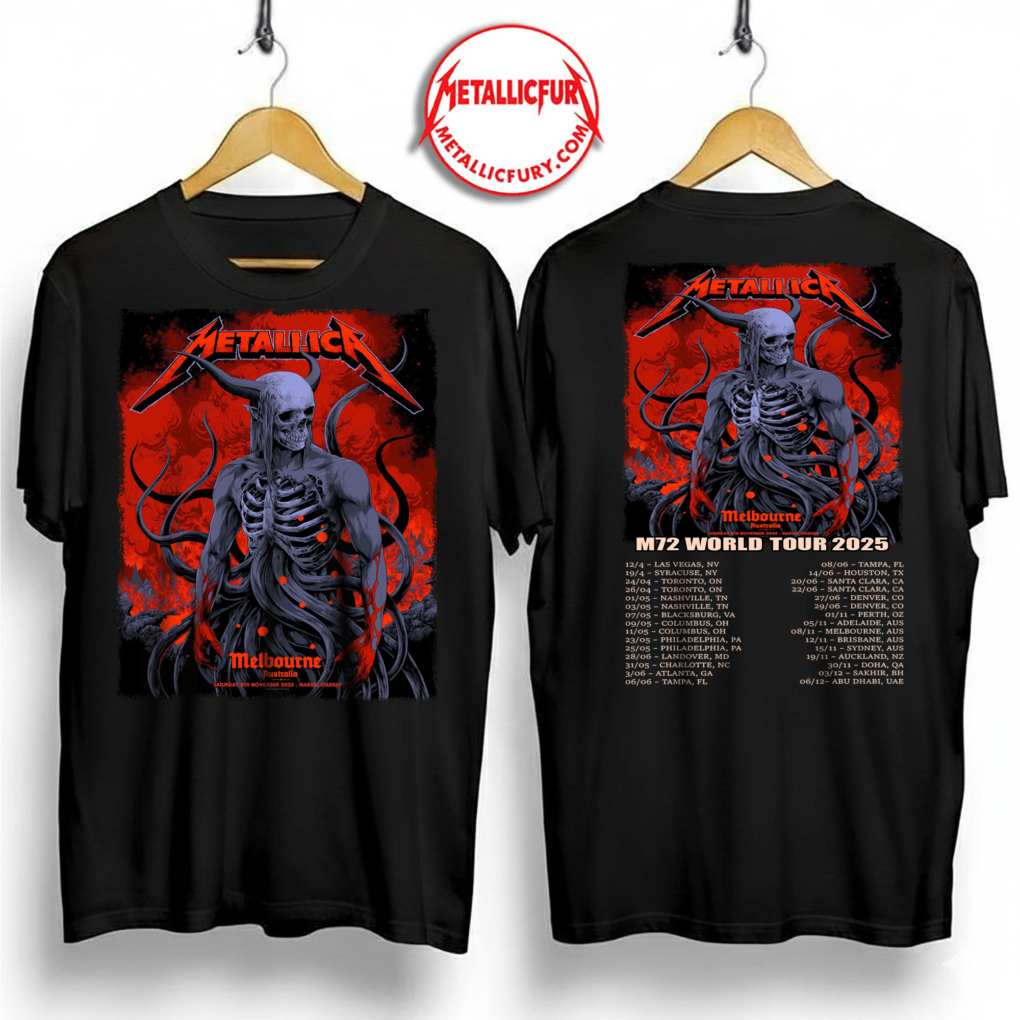 Metallica’s M72 World Tour has gone down in history as one of the largest musical events, and the Melbourne stop on November 8, 2025, at Marvel Stadium left an unforgettable mark. To commemorate this explosive moment, a special collectible item was released: The M72 Melbourne Pop-Up Exclusive T-Shirt.