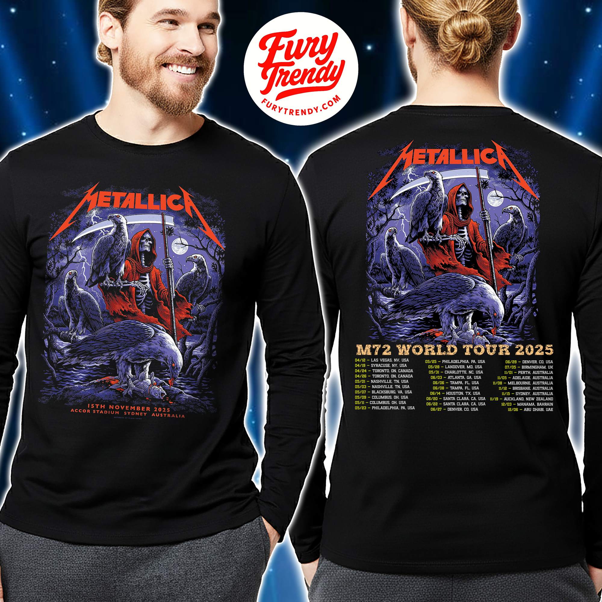 Relive Metallica’s explosive night in Sydney, Australia, on November 15, 2025 at Accor Stadium, with this premium M72 Sydney 2025 Long Sleeve Shirt. Designed for fans who want to carry a piece of the legendary M72 World Tour, this shirt captures the raw energy and iconic visuals of the concert.