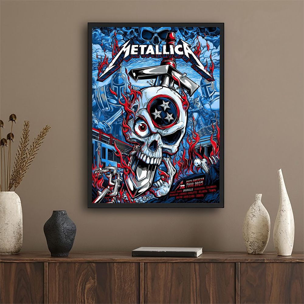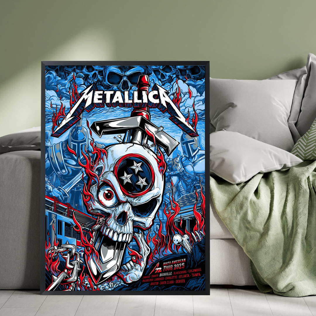 Metallica’s M72 World Tour continues to sweep across North America in 2025, bringing the heat of top-tier heavy metal music and unique accompanying visual arts. This poster is authentic, exclusive merchandise from the Pop-Up Shop in Nashville, Tennessee, created by the talented artist Landon Armstrong.