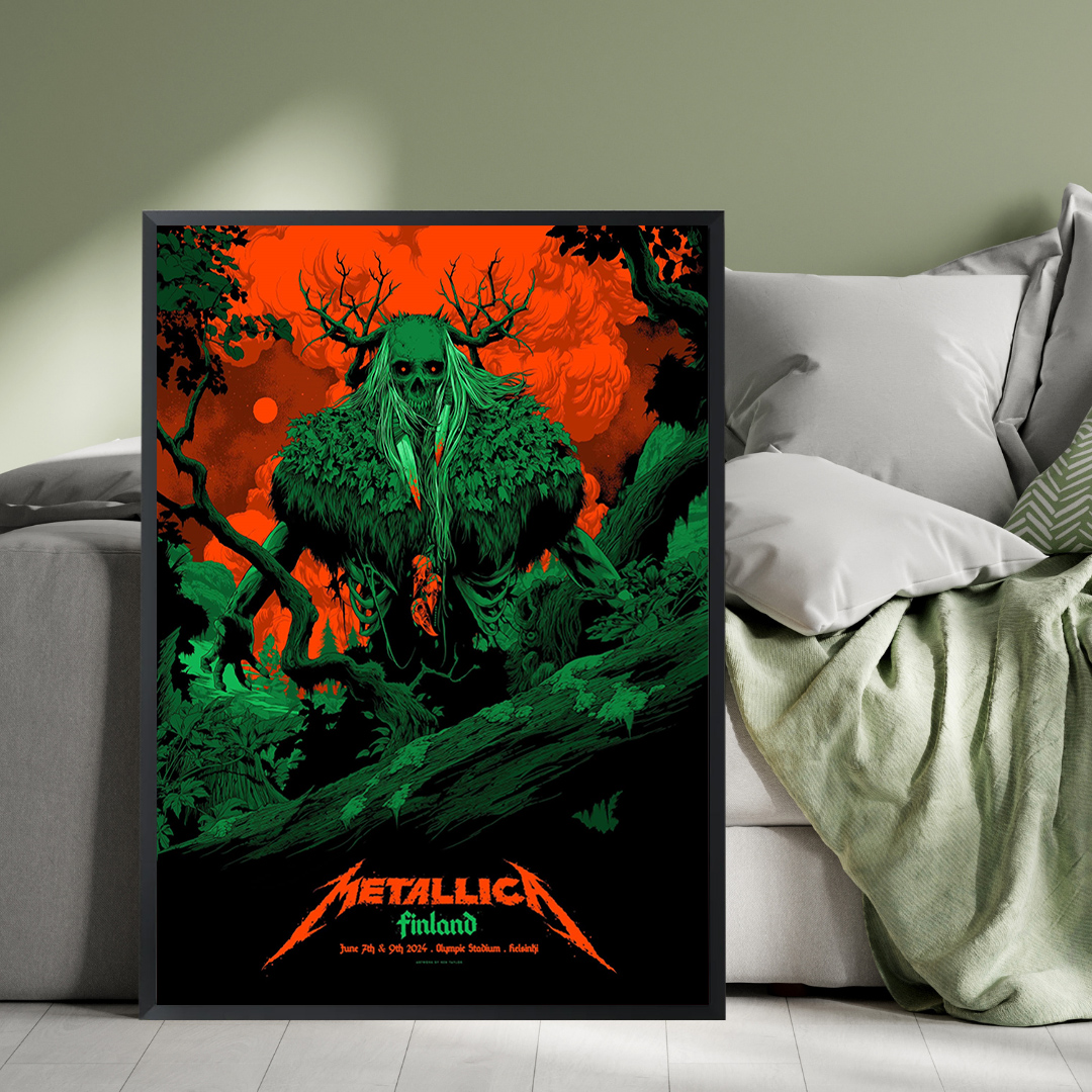 Metallica M72 World Tour Helsinki Poster – June 7 & 9, 2024 – Helsinki Olympic Stadium, Finland – Artwork by Ken Taylor