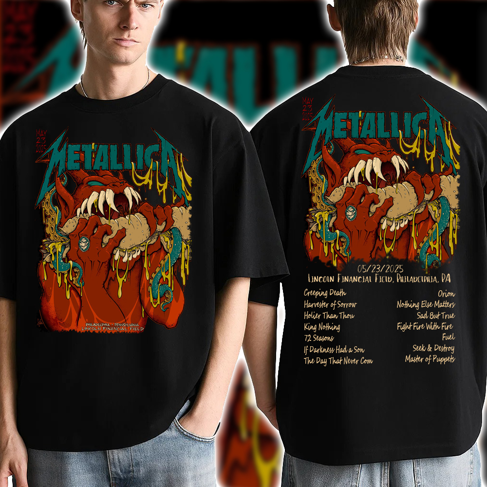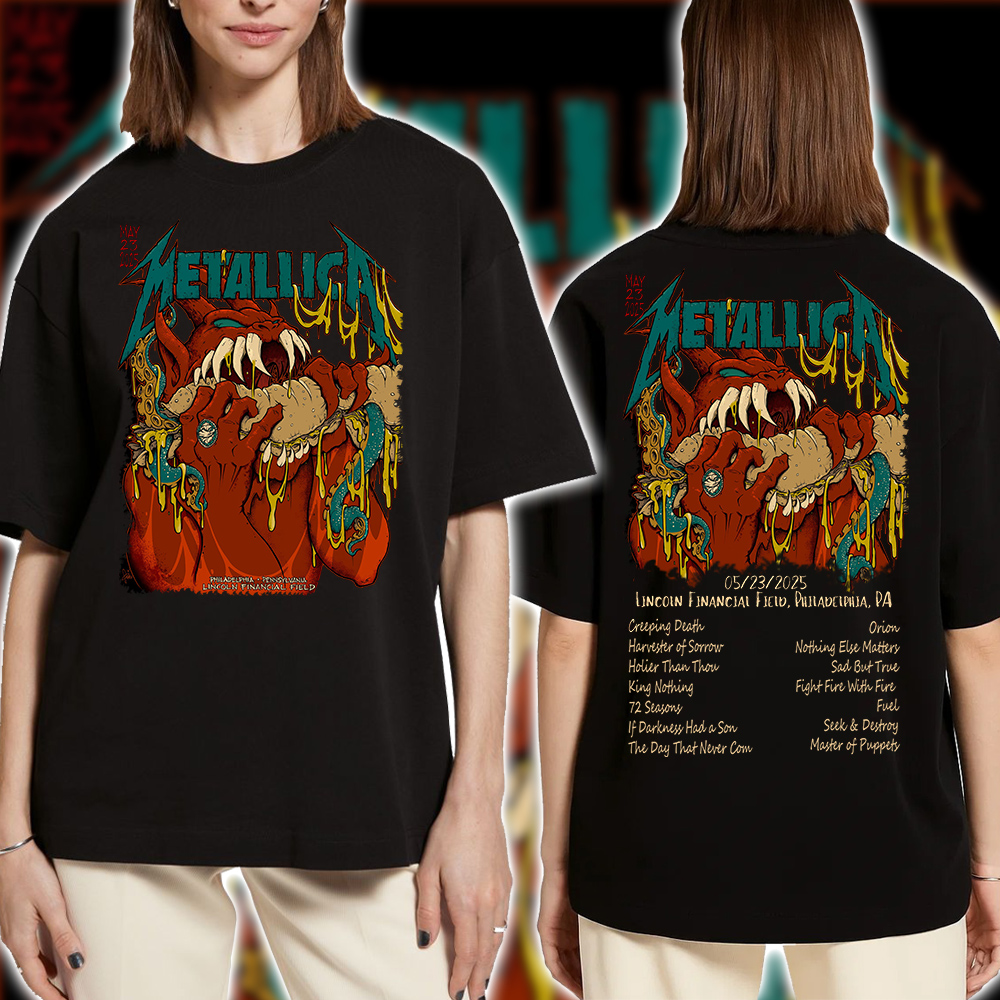 Metallica M72 World Tour Philadelphia T-Shirt – Night 1 – May 23, 2025 at Lincoln Financial Field – Setlist Back Print