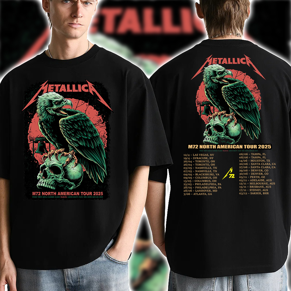 Get ready to unleash your inner metalhead with the Metallica M72 World Tour Official T-Shirt – the exclusive Philadelphia edition from the No Repeat Weekend shows on May 23 and 25, 2025 at Lincoln Financial Field. This limited-edition piece of official tour merchandise fuses the raw power of Metallica’s live performance with iconic Philadelphia symbolism.