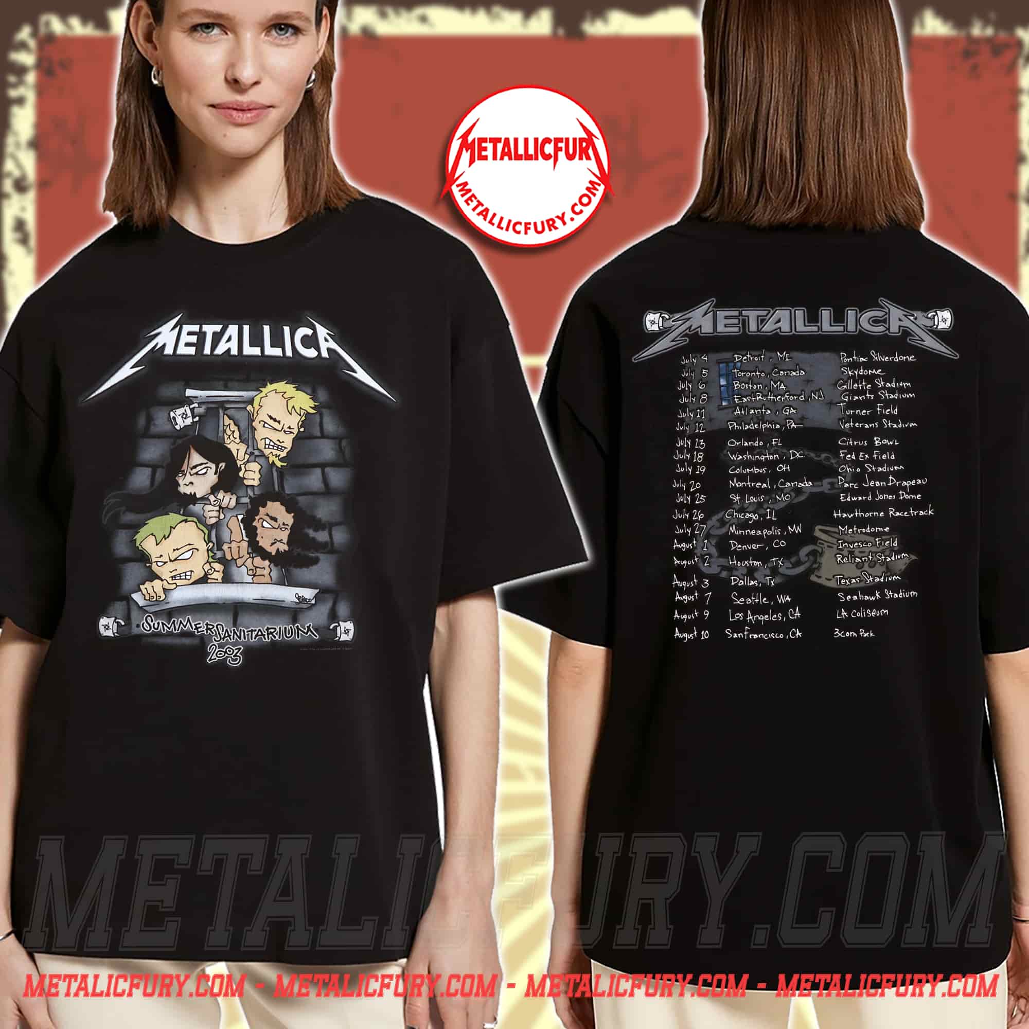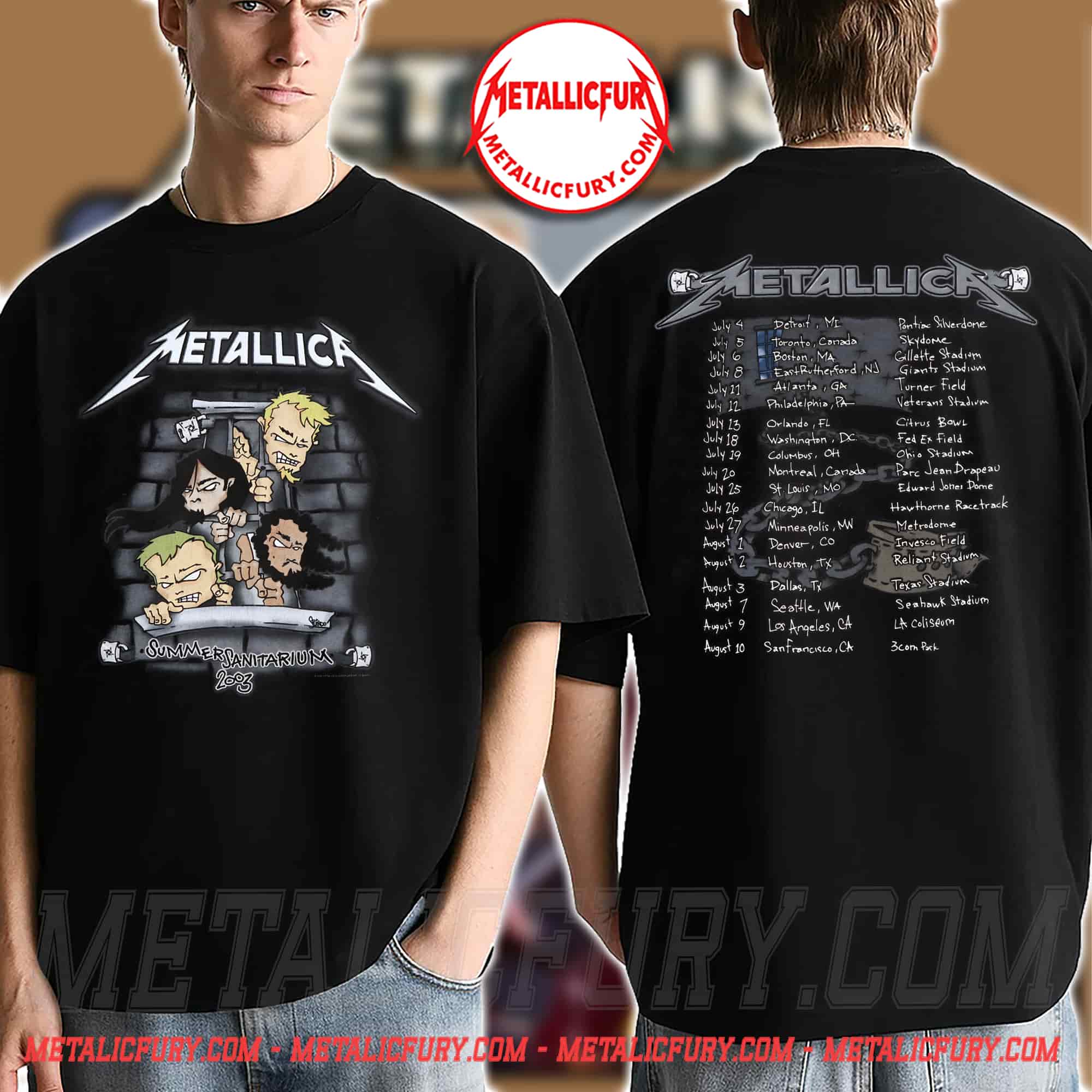 Take a trip back in time to 2003. The Metallica Summer Sanitarium Tour T-shirt isn’t just a bold style statement; it’s a true historical artifact of Heavy Metal. Released shortly after the St. Anger album dropped, this design marks one of the band’s most turbulent yet brilliant eras, welcoming the legendary bassist Robert Trujillo. This is a classic piece of “Band Tee Y2K Concert Merch” that any vintage collector or die-hard fan yearns to own.