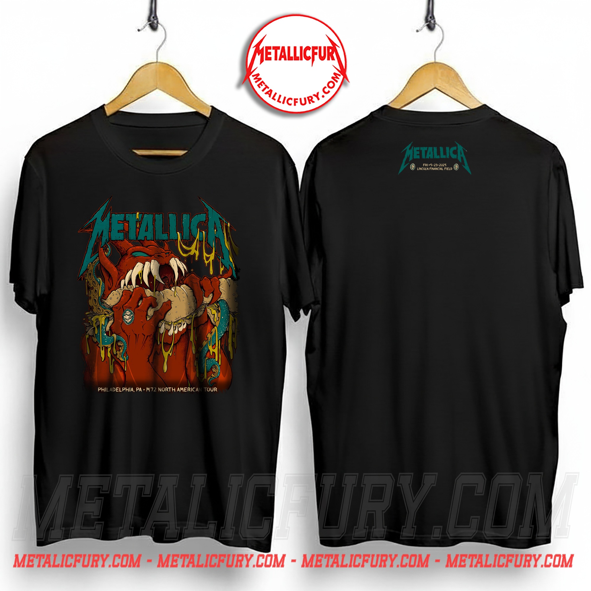 Official Metallica M72 Philadelphia Night 1 T-Shirt – Lincoln Financial Field, Pennsylvania – May 23 2025 – Artwork by Squindo