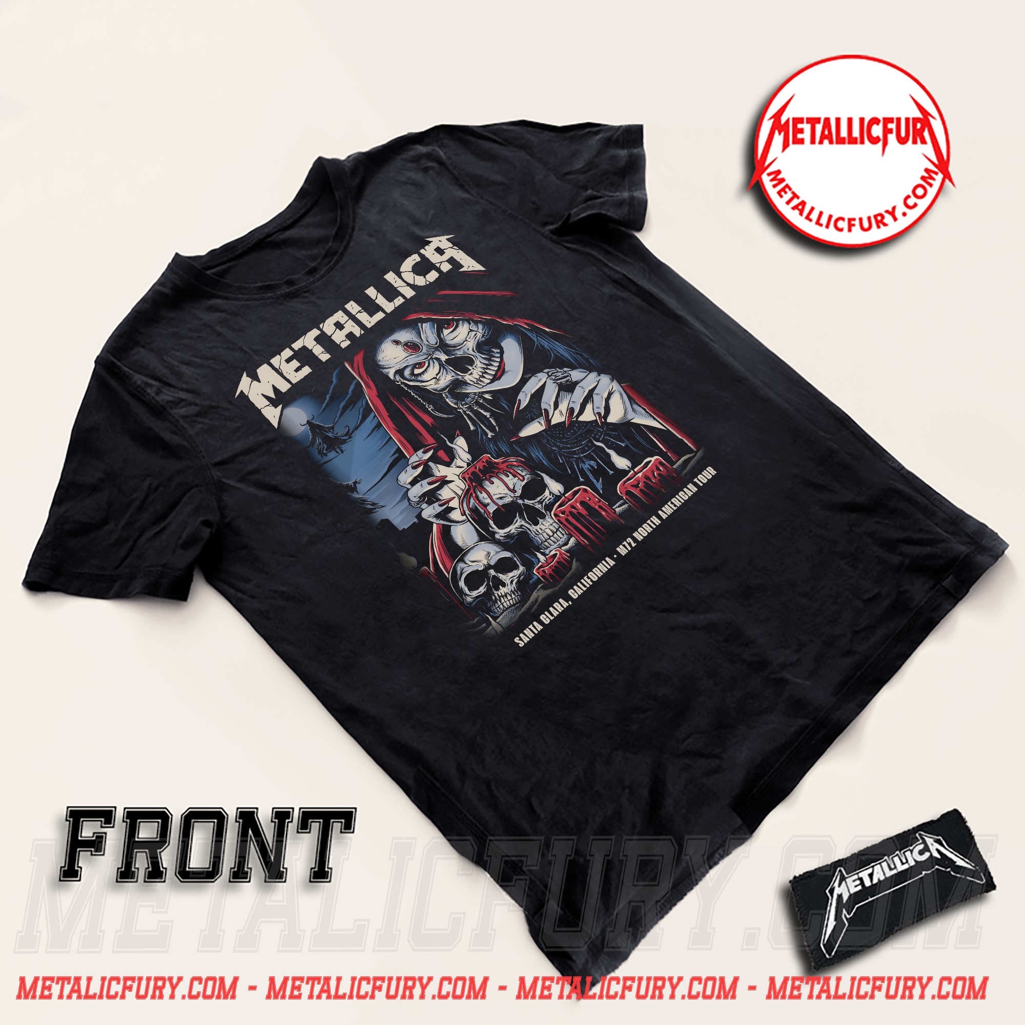 Official Tour Merchandise: Authentic Metallica M72 World Tour gear specific to the Santa Clara stop.